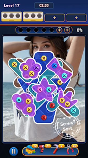 スクリューソートを際立たせるのは、タイマーやプレッシャーのないストレスフリーなゲームプレイで、プレイヤーが自分のペースで各パズルを楽しむことができる点です。スクリューが外れるときの滑らかなビジュアルと満足のいく音が全体的な体験を向上させます。学ぶのは簡単ですが、プレイヤーが進むにつれて難易度が上がり、論理と計画スキルの優れたトレーニングを提供します。この楽しいパズルゲームは、リラックスするための楽しく魅力的な方法を探している人に最適です。